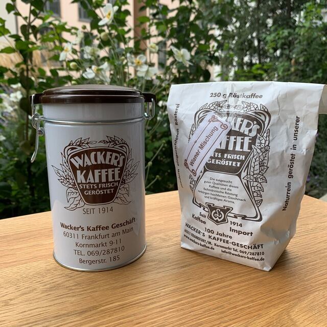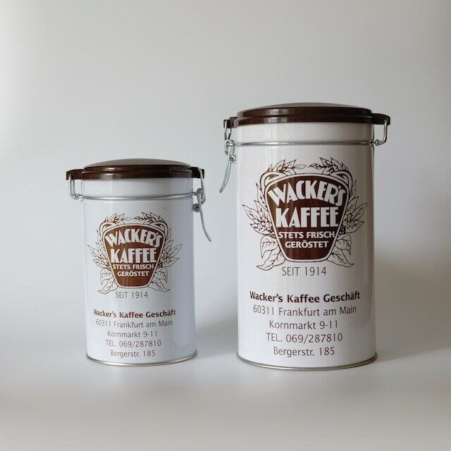 フランクフルトの100年以上の歴史を誇る老舗コーヒーロースター„Wacker's Kaffee“のコーヒー豆を保存するためのキャニスター缶。