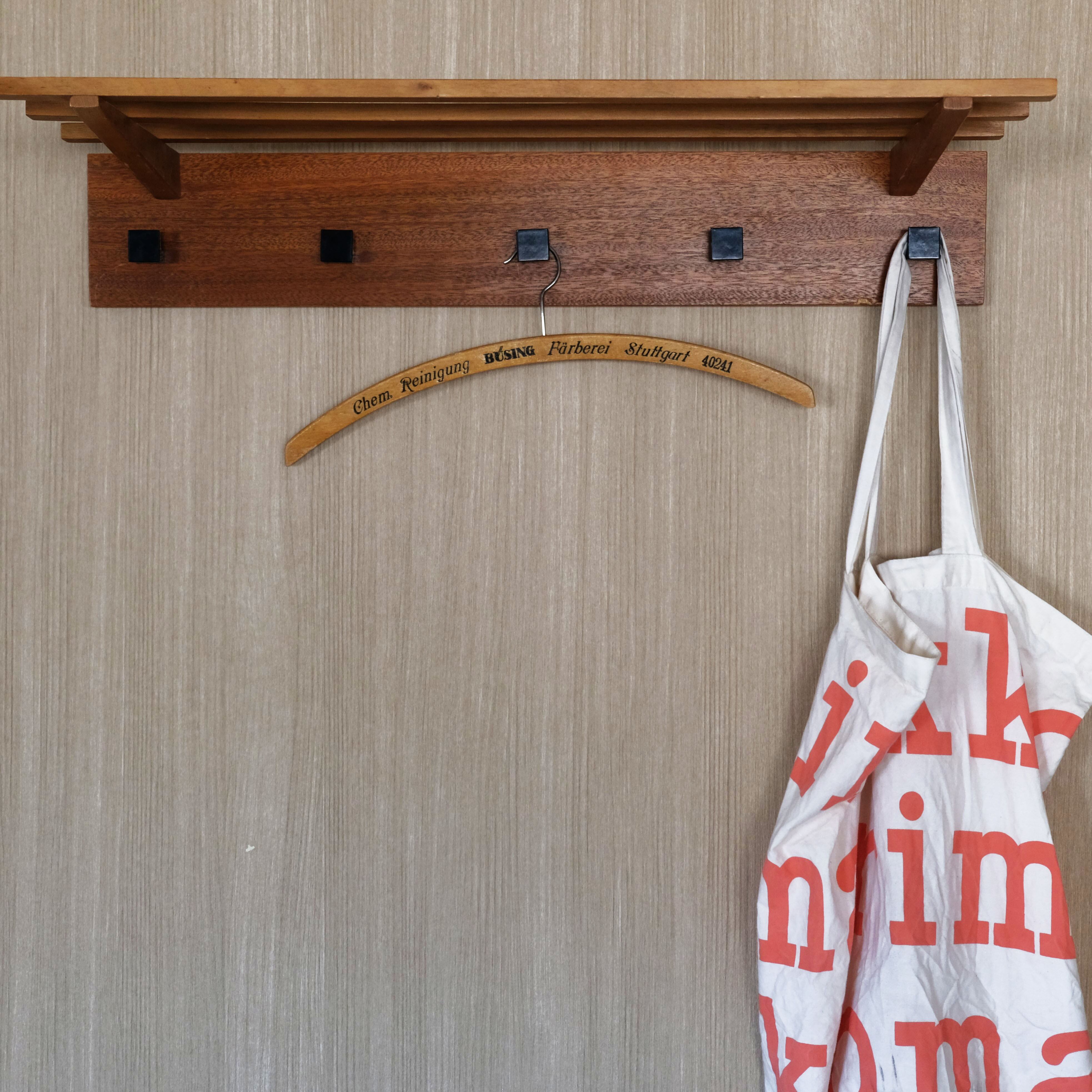 私、木製ハンガーすごく好きです。ドイツ語が書いてあるものは、ここで使われてたんだー、と想いを馳せれるし、無骨ながらも木の温かみが感じられて、全部全部愛おしい。今は、クリーニング屋さんから帰ってくる服には、プラスチックだったり、針金のハンガーだったりがついてきますが、時間が経つと割れたりゆがんだりしてしまうもの。"木"だからこそ時を刻んでもこうして人の手に渡るんだな。