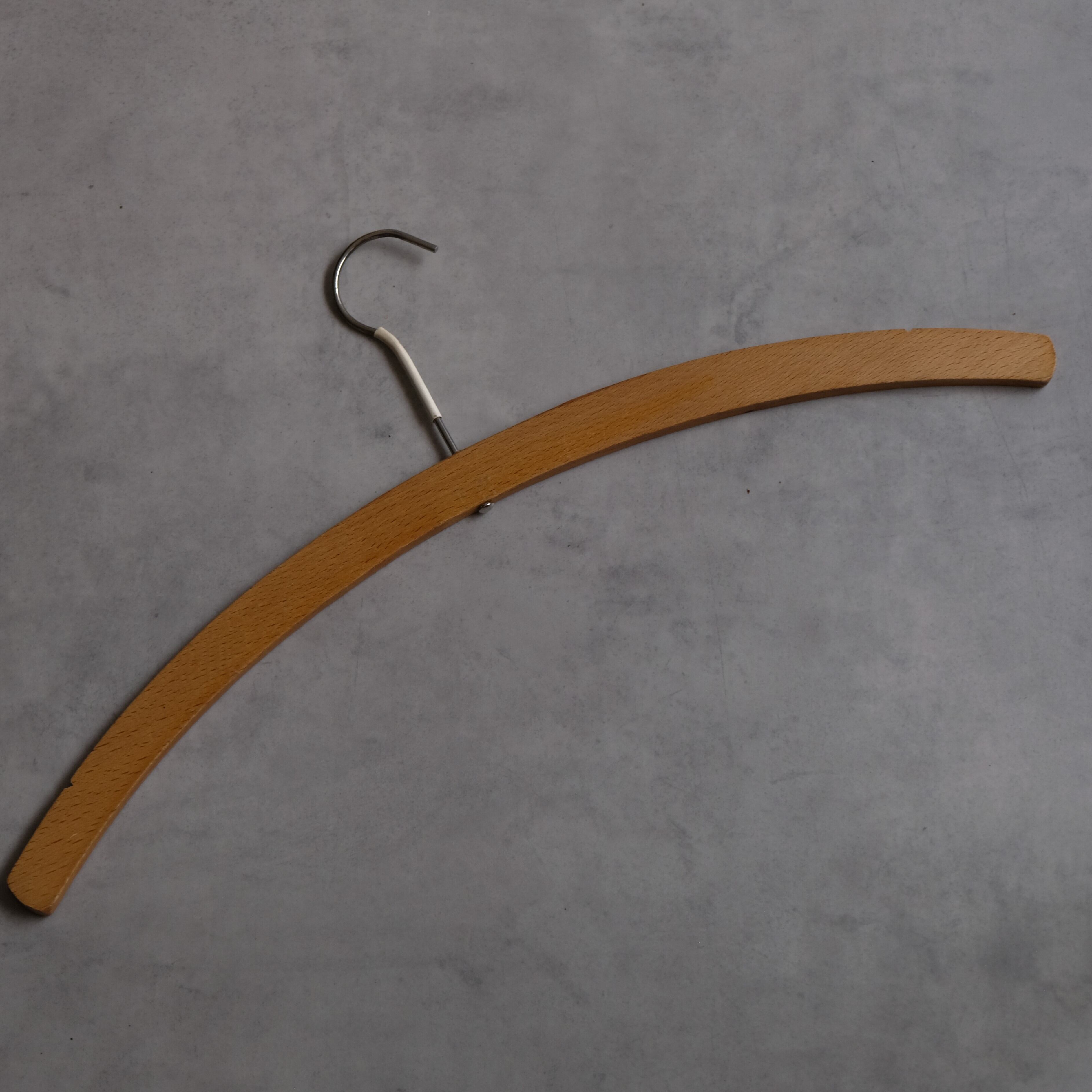 私、木製ハンガーすごく好きです。ドイツ語が書いてあるものは、ここで使われてたんだー、と想いを馳せれるし、無骨ながらも木の温かみが感じられて、全部全部愛おしい。今は、クリーニング屋さんから帰ってくる服には、プラスチックだったり、針金のハンガーだったりがついてきますが、時間が経つと割れたりゆがんだりしてしまうもの。"木"だからこそ時を刻んでもこうして人の手に渡るんだな。