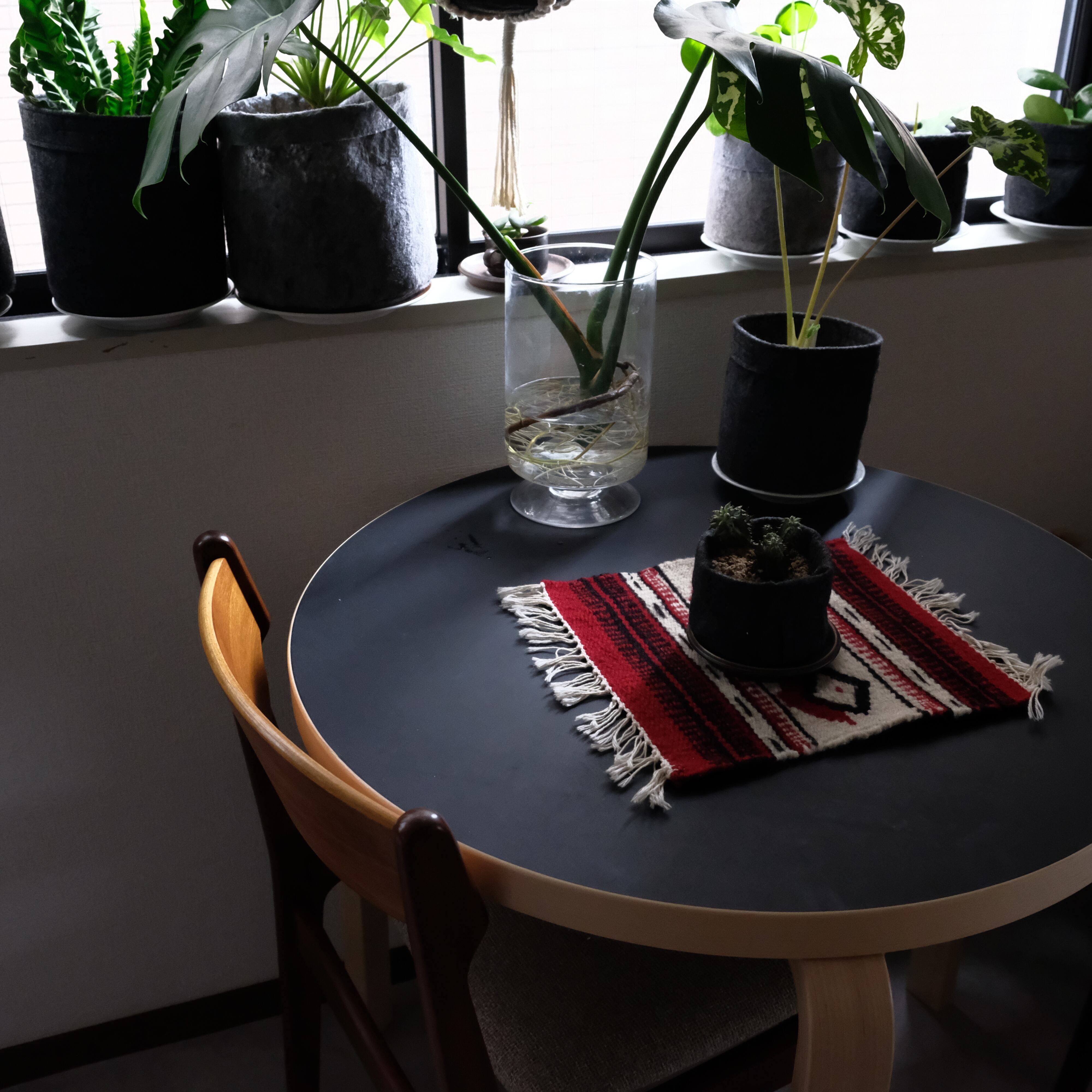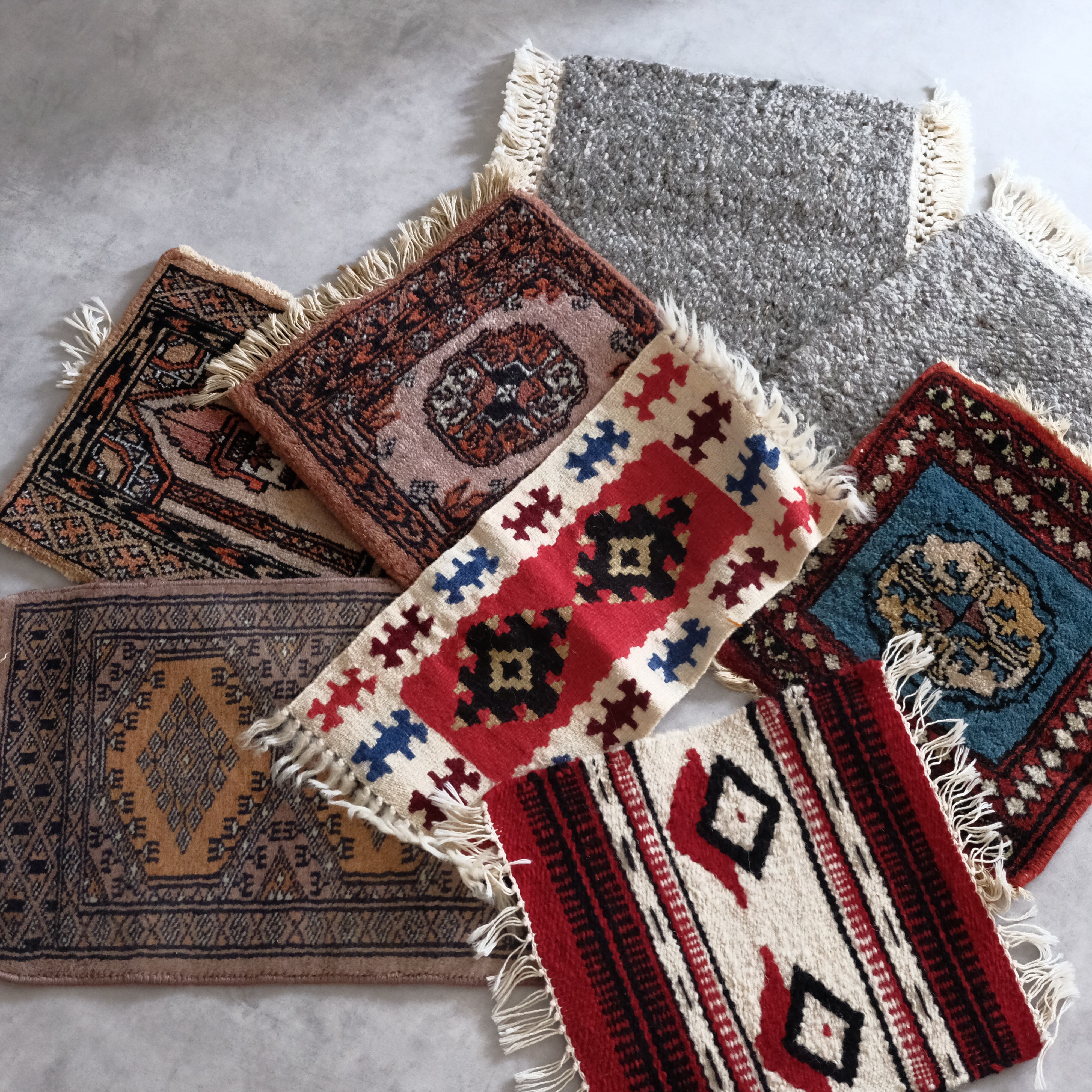 毛足の短いサラサラとした手触りで、とても小さな絨毯。花瓶敷きにもおすすめです。